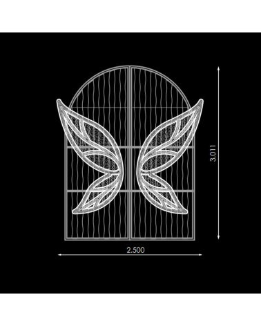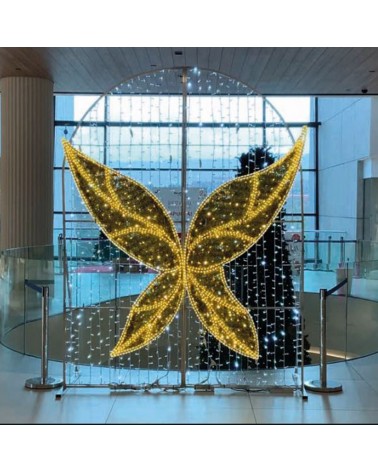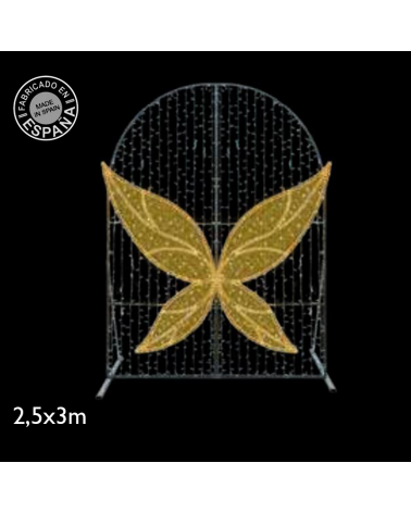 Christmas figure tinkerbell wings measures 250x301.1 cms. Illuminated with cold and warm white LED lights with intermittent effect. Decorated with luminous tapestry. Being LED technology, it only consumes 125W. Suitable for outdoor use, IP65.
