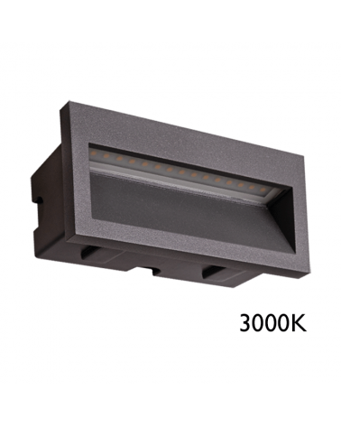 Recessed rectangular 3W LED wall light available in 3000K or 4000K IP54 suitable for exteriors 80º. Made in Spain