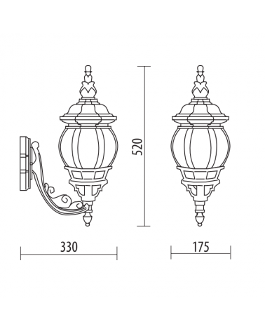 |Outdoor wall light IP44 E27 height 52cms, with head facing upwards