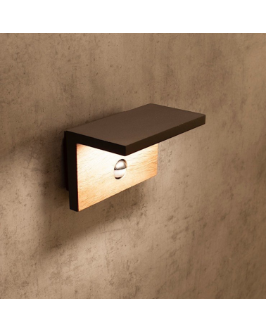 LED Outdoor wall lamp 15W 3000K in grey aluminum and wood IP54 with motion sensor