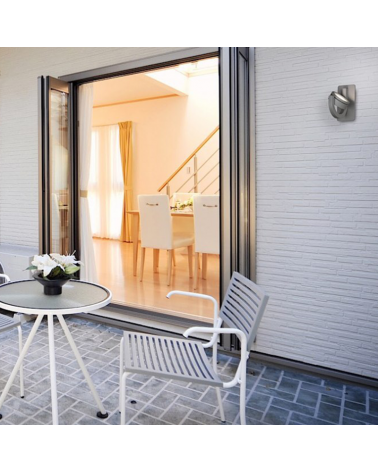 18cm outdoor wall lamp. Made of aluminum available in dark grey and white finish. For light bulb with GX5.3 socket. Its head is adjustable, making it possible to modify the light in different directions, downwards, upwards and on both sides. With IP54 protection. Bulb not included. Ideal for lighting porches, terraces, balconies, etc.