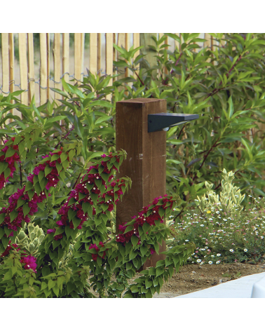 LED solar wall spotlight designed for outdoor use IP54. Made of aluminum available in black and white finishes. It has a built-in PIR sensor at the bottom. Power of 2.5W and a light temperature of 4000K. Ideal for gardens and walkways. Rechargeable with sunlight in approximately 5-6 hours with a range of 2-3 hours.