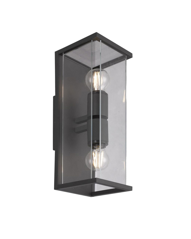 Outdoor wall lamp 40cm 2xE27 20W in aluminum and glass, graphite finish IP54