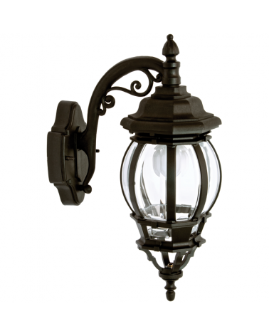 Decorative outdoor wall lamp with a height of 40cm made of aluminum and glass. It offers upper and lower lighting through its E27 socket bulbs (Not included).