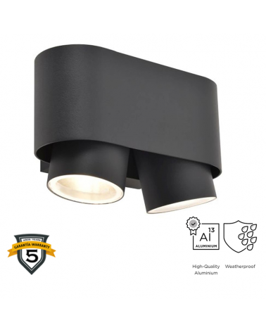 This wall light has two GU10 sockets for bulbs with a maximum power of 14W, allowing you to choose from a wide variety of bulbs Low consumption LED (Bulbs not included). Thanks to the possibility of adjusting their heads, unique and carefully placed light patterns can be generated on the exterior walls of your home.