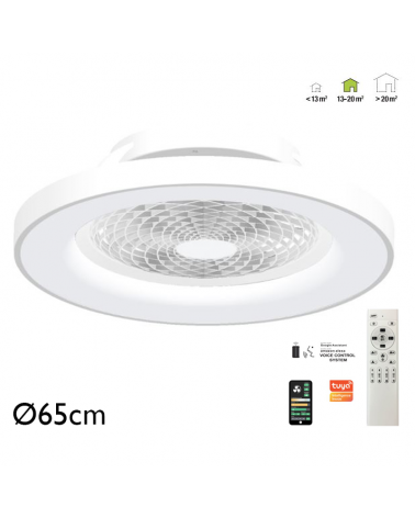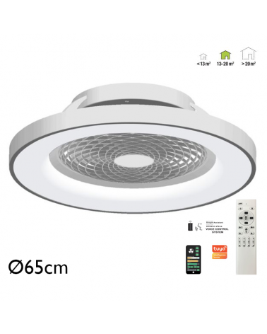 White and wood ceiling fan 30W Ø52cm LED ceiling light 45W remote control DIMMABLE light temperature