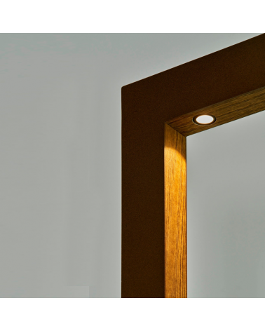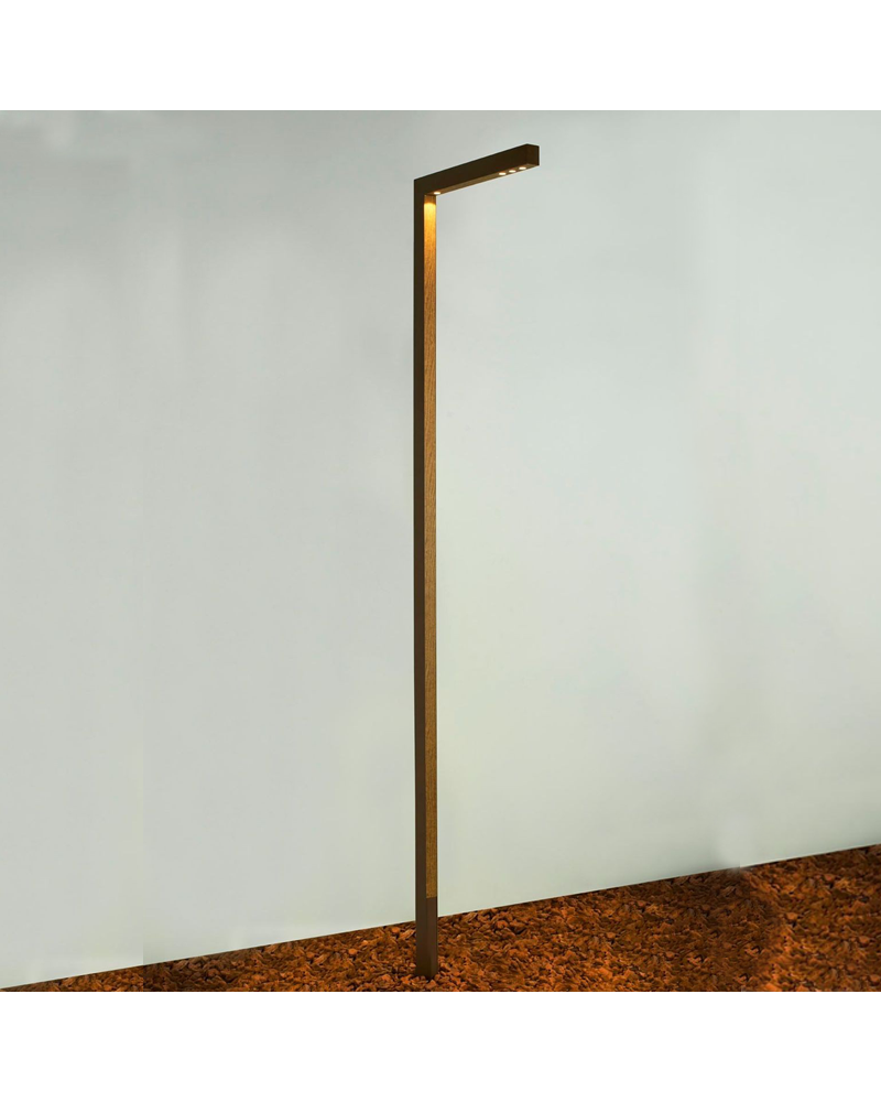 Designed by the architects Rafael Soler Márquez and Francisco Martínez Manso, their works have been awarded prestigious awards and mentions for architecture, both nationally and internationally. Manufactured as a lamppost or as an exterior wall light. Made of aluminum and wood. Finished in corten. With IP65 protection.