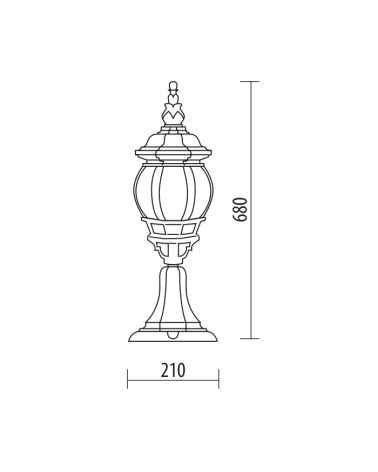 Lamppost IP44E27 68cm with beveled polycarbonate diffuser UV resistant flower finish