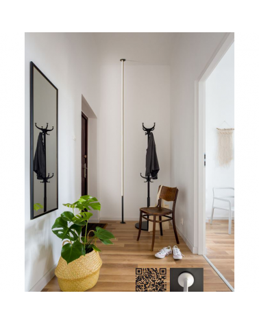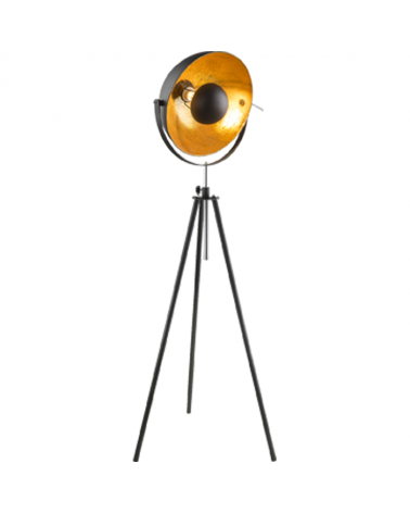The extraordinary black three-legged floor lamp "Galileo" impresses with its original and striking appearance. The lampshade can be rotated and it is golden inside. In addition, this lamp is adjustable in height, is activated by an on-off switch and has an E27 socket, for which you can freely choose a light source of up to 60 watts.