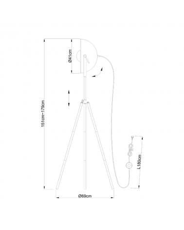 Galileo floor lamp 179cm E27 oscillating black and copper shade with adjustable height tripod