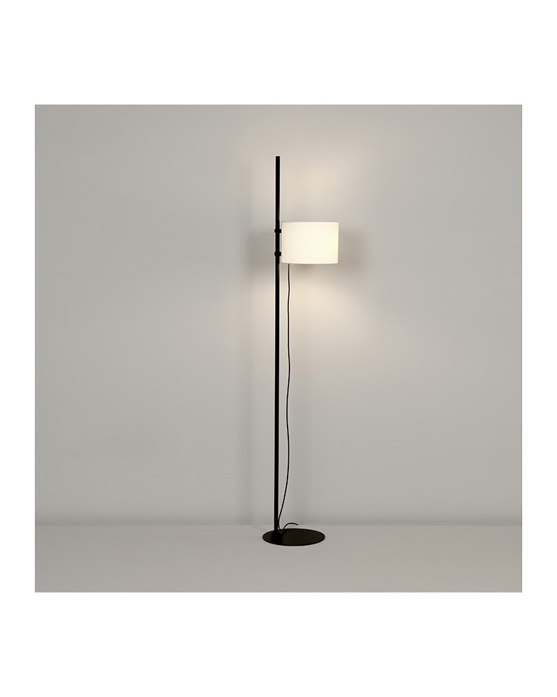 Floor lamp with a double design lampshade allows for multiple possibilities of shade height and position, creating a harmonious and customizable style for any room that needs a touch of style and suggestion with indirect light. Made in Spain.