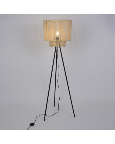 This 150cm tall floor lamp designed for boho style rooms. Lampshade made of braided paper ropes and a metal structure. It provides a light and warm presence perfect for indirect lighting.