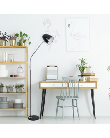 Original LED floor lamp 129cm high. Made of aluminum and iron, available in black or white finishes. It offers a foot switch, thus making it easy to turn on and off. Perfect for lighting halls, living rooms or bedrooms, offering a very original touch that will not go unnoticed in your home. Long life of 30,000 hours.