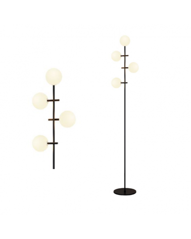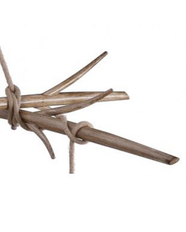 Original floor lamp 182cm high with a rustic design. Made of metal with wood effect, decorated with rope linking to the base. White and wood finish. It provides a light and warm presence perfect for indirect lighting, giving a natural touch to your home. It offers a foot switch, thus making it easy to turn on and off.