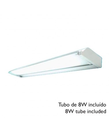 58.4cm wide 9W LED segmental luminaire strip made of glass and plastic, white finish. 4000K cool white light. With a life of 25,000 hours.