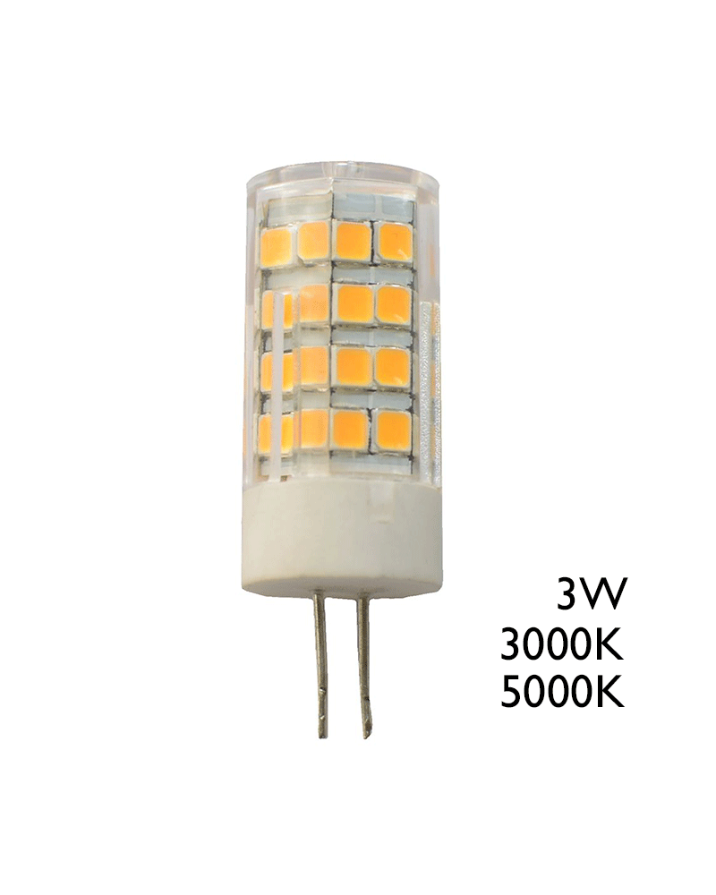 3W 12V G4 LED bulb. Available in 3000ºK warm white light or 5000ºK daylight white light, and a luminosity of 300Lm. Save on your electricity bill up to 80%.