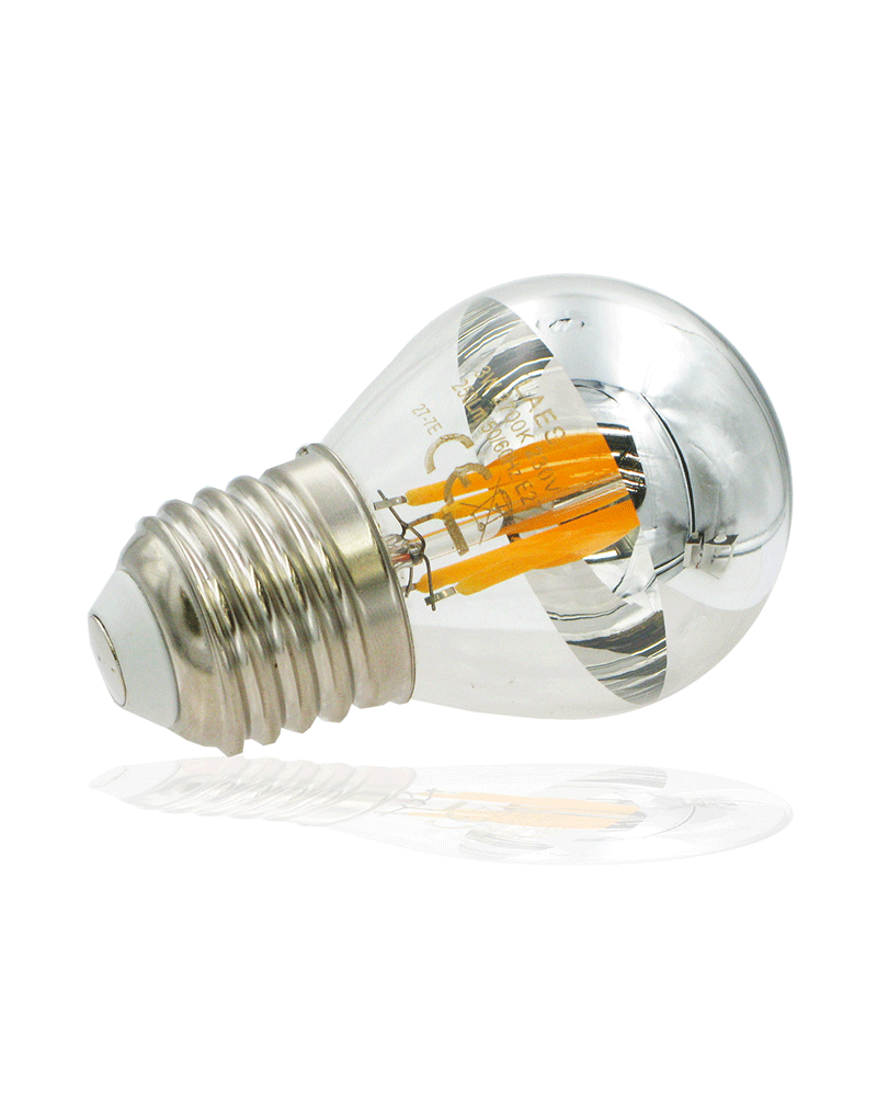 LED small round bulb 45 mm. Dome Mirror LED filaments E27 3W 2700K 250Lm.