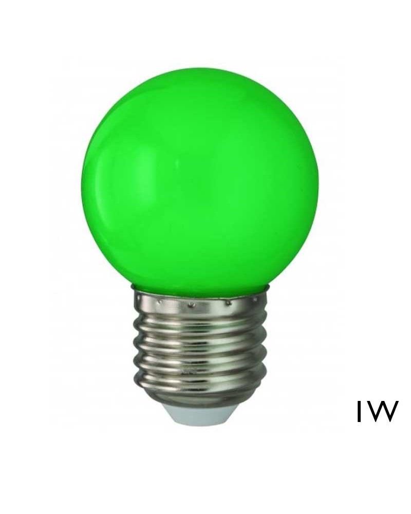 Spherical bulb with 45mm diameter, green color, with E27 socket and 1W LED technology, it is ideal for garlands.