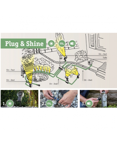 Set of 3 IP65 3X2.5W 3000K LED garden spotlights with 5m cable, 4 outputs and transformer