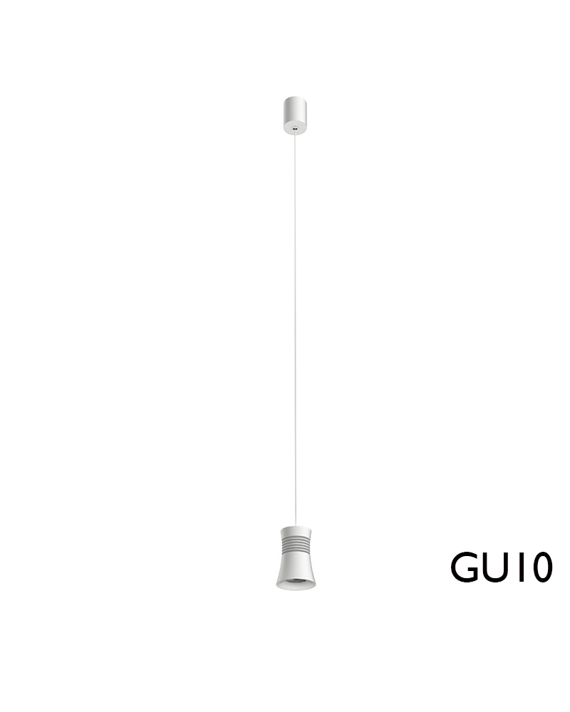 Surface lamp with a cylindrical shape of 7.6cm in diameter. For GU10 socket. Made of aluminum finished in white. Adjustable in height, with a cable length of 2 meters.