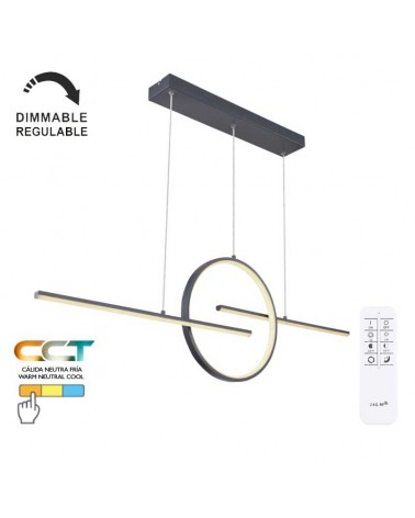 LED suspension lamp with a circular aluminum base with 4 height-adjustable lampshades to be able to illuminate to your liking. 32W power with 3000K warm light temperature. Shades made of black finished aluminum and white acrylic diffuser. Ideal for lighting tables in kitchens, living rooms or restaurants. It offers the possibility of regulating height. High quality and long life with more than 30,000 hours