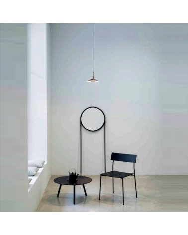 8W LED suspension lamp with a warm light temperature of 3000K. Lampshade made of black and brass finished aluminum and white acrylic. Perfect for lighting kitchens, living rooms or restaurants. It offers the possibility of regulating height. High quality and long life with more than 50,000 hours