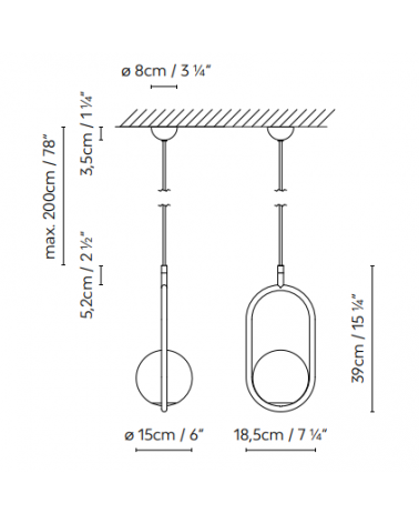 Designed by Cutu Matazuelos and Eva Prego who form the multidisciplinary design studio Stone Designs. They took their first steps in the world of interior design, exhibitions and stands, which allowed them to experiment with different languages and forge a very personal vision of design, based on naturalness and simplicity. Made with one or two opal glass spheres. Optional bluetooth system to regulate the lamp through an app, compatible with IOS and Android (check price)