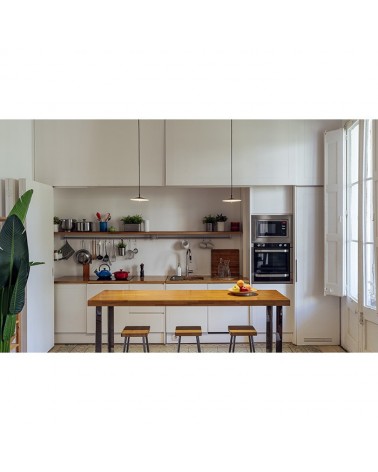 60cm aluminum ceiling lamp with a subtle and linear design, indirect and warm lighting. It combines perfectly with the matching table, floor and wall lamp, available in a White finish and a matt Charcoal Gray finish and other diameters. Made in Spain.