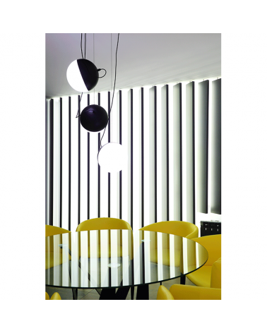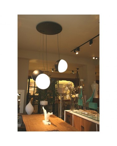 Elegant and minimalist ceiling lamp with 3 25cm spheres that simulates the phases of the moon, designed by Francesc Rifé in Steel and blown glass, with many combinations for both floor and wall, it is offered in different colors, black and mink.