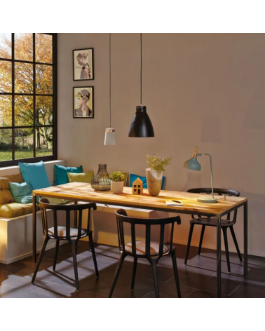 Lamp made of metal and marble with a matt black and copper finish in an industrial style, the cable of the lamp is covered with fabric. Bring a touch of class to fashion for your favorite spots around the house.