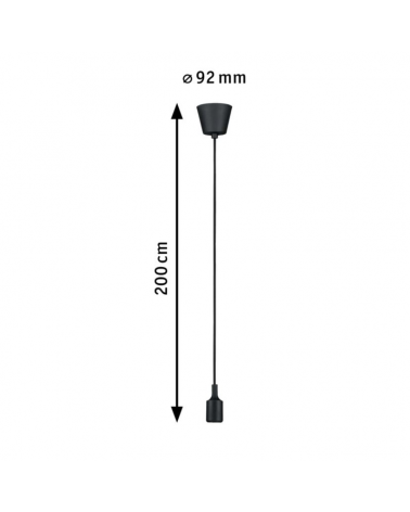 Ceiling lamp made of silicone and acrylic finished in black. The cable of the same color as the E27 lamp holder has an adjustable height of up to 200cm. Bulb not included.