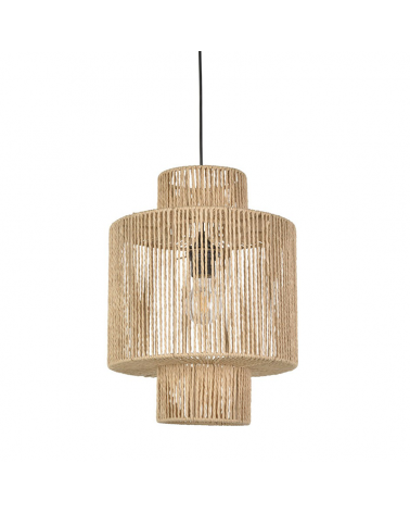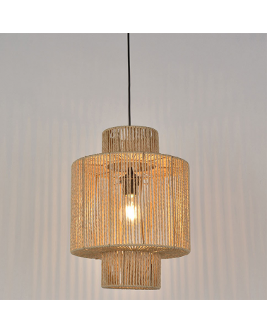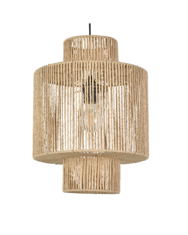 Very original and decorative hanging lamp. Made by braided paper cord creating an original lighting, made by hand available in natural or black finishes creating a boho style. For any room such as bedrooms, living rooms, restaurants, dining rooms... It provides a comfortable and natural environment. Made with ecological materials and without impact on the environment. Bulb not included.