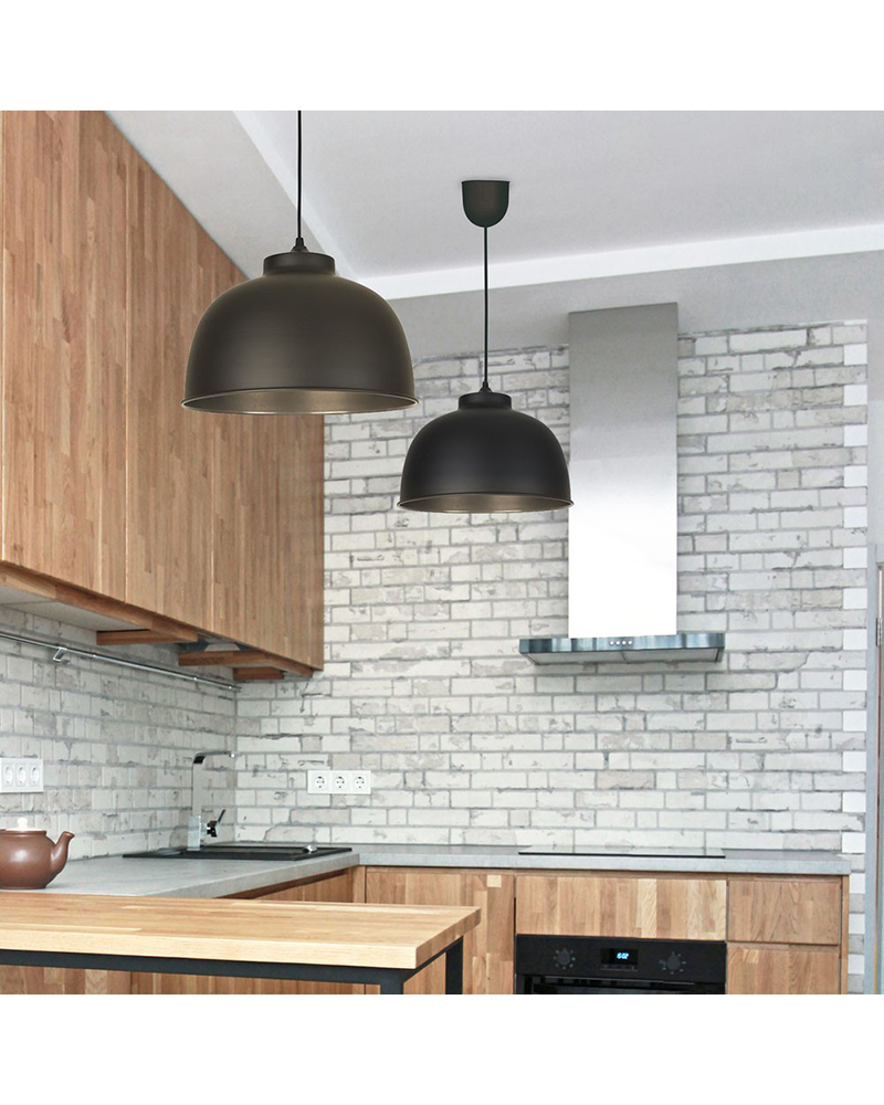 Industrial style suspension lamp. Made of metal available in several black and green finishes with a cement-effect interior. Adjustable wall light to facilitate the positioning of the light. Perfect for dining rooms, kitchens and bars, especially for lighting tables, bars and countertops.