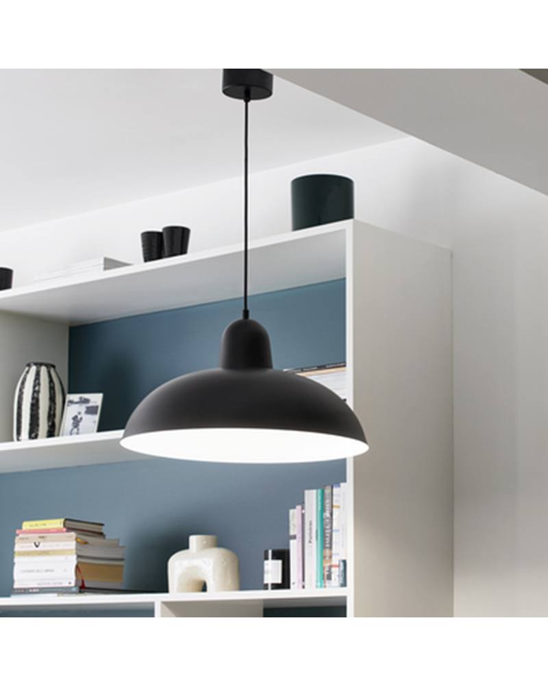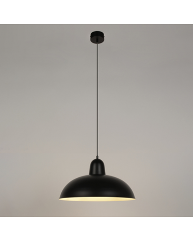 Vintage-style ceiling lamp made of metal with a black finish on the outside of the lampshade and a white finish on the inside. Equipped with an adaptable DCL canopy. Ideal for lighting tables, countertops, bars...