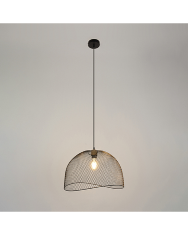 Nordic-style ceiling lamp with a Nordic-style round base, mesh or metal mesh shade available in a black or white finish and with a wood-effect detail. Being made with a metal grid, the light bulb becomes visible so that a decorative light bulb could be chosen, making the luminaire more attractive. Ideal for living rooms, bedrooms and kitchens, perfect for lighting tables or countertops.
