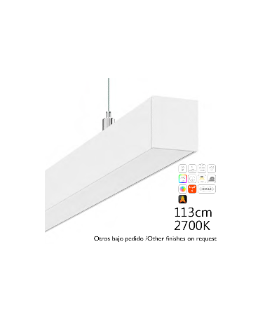 Beautiful 325W integrated LED circular design ceiling lamp that provides direct light to the floor and indirect light to the ceiling. Available in light color temperature at 3000K and 4000K. Made of aluminum and matte white finish, 305cm in diameter. It is perfect for lighting current and minimalist spaces. Light intensity regulation. Dali Driver, also available and compatible with On/Off, Push, Casambi and Tuya technologies.