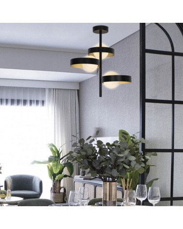 Ceiling lamp with 3 lights in black and gold finish metal and G9 glass 3x33W
