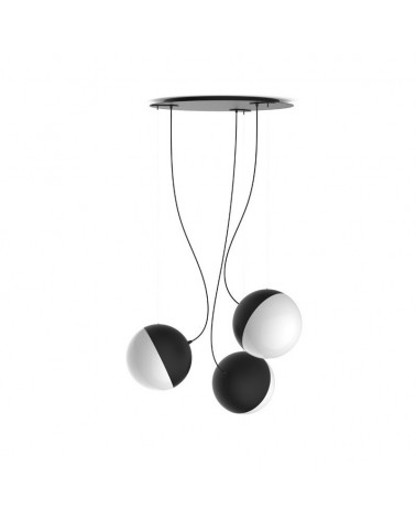 Ceiling lamp d 100cm wide. GU10 socket. Made of aluminum available in black and white finish. Height adjustable up to 150cm. The spotlights are adjustable, allowing the light to be focused and projected where desired. Bulbs not included.