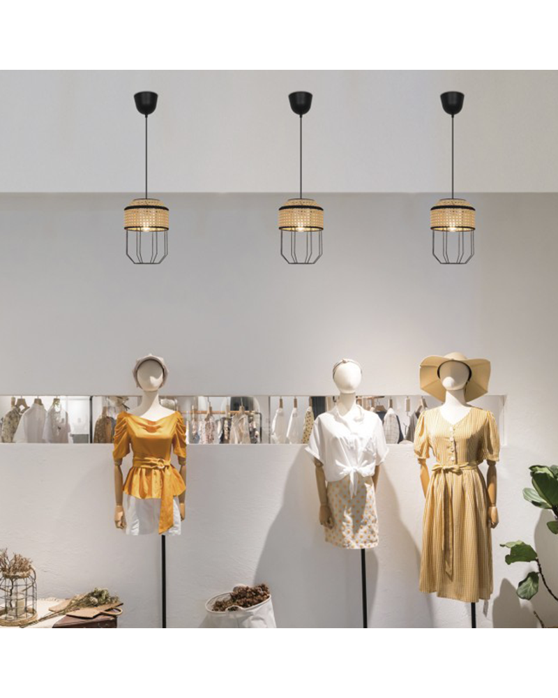 The cannage-style rattan pendant lamp is a lighting element that will bring a natural and sophisticated touch to any space in your home. With a combination of black and natural colors, its elegant and modern design is capable of fitting into any decorative style. The structure of this lamp is made of resistant metal and rattan, a natural material that gives it that bohemian and organic look that is so popular in today's decoration.