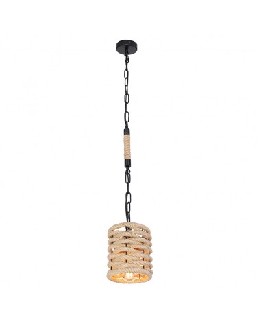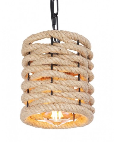 Rustic pendant lamp with shade 16.5 cm hemp rope E27 60W with black chain