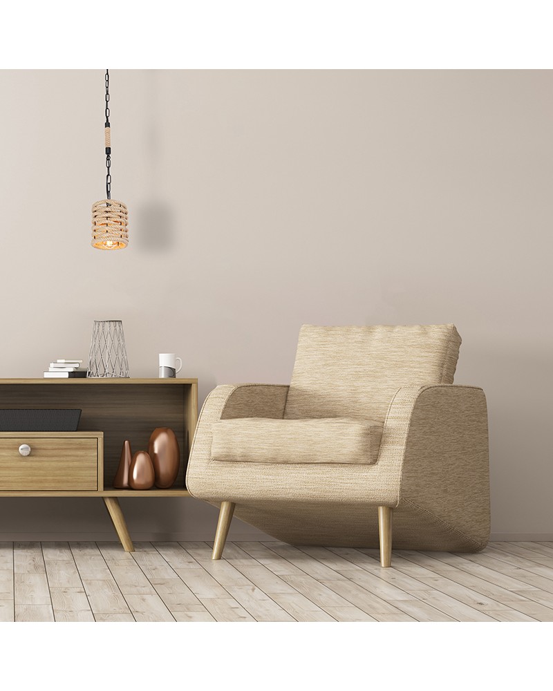 This rustic pendant lamp with a 16.5 cm shade and hemp rope is the perfect choice if you are looking for a ceiling lamp with a boho and rustic style. The design of the lamp, combined with the hemp rope, gives it a natural and authentic touch that will make any room feel more welcoming.