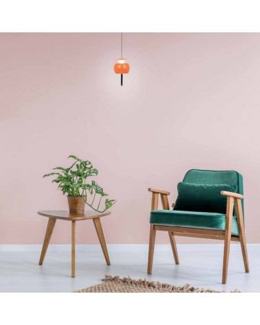 With a diameter of 96cm, this lamp becomes the center of attention in any space, capturing eyes and emitting a captivating light. Made of high-quality aluminum, its structure ensures exceptional durability and a modern aesthetic that adapts perfectly to various environments. Available in three finishes orange, copper or chrome/black.
