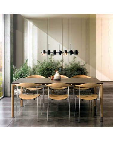 If you are looking for an even more convenient experience, this ceiling lamp can be equipped with Bluetooth upon request, allowing you to control the lighting from your mobile device easily and conveniently. The manufacturing quality of this lamp is unsurpassed, as it is made of high quality aluminum. This guarantees its durability and resistance over time, in addition to giving it a modern and elegant look that adapts to any decoration style. The adjustable LED suspension system, designed in a modular way, also offers the versatility of creating multiple compositions. It is available in two standard sizes. Each of these luminaires consists of five light bodies that can be adjusted as desired, providing direct lighting. The structure of the Kup luminaire has a black finish, while the light bodies are available in black, gold and copper. In addition, there is the option of purchasing additional modules, which consist of a structure and two light heads, which allows the dimensions of the luminaire to be expanded to adapt to the desired space and surface. These modules can be easily connected to either end of standard luminaires. CONSULT. These modules can be easily connected to either end of standard luminaires. CONSULT. These modules can be easily connected to either end of standard luminaires. CONSULT.