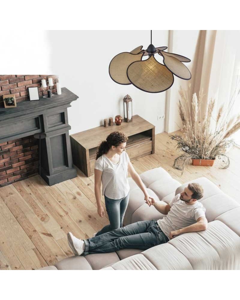 Ceiling lamp with a diameter of 54cm, an outstanding piece that fuses elegance and functionality. Its careful craftsmanship from fabric and acrylic creates a harmony of textures and materials that adds a distinctive touch to any space.