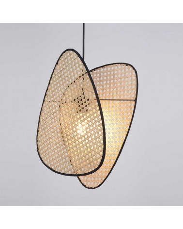 Ceiling lamp 44,5cm high with 2 cane shades in natural finish E27