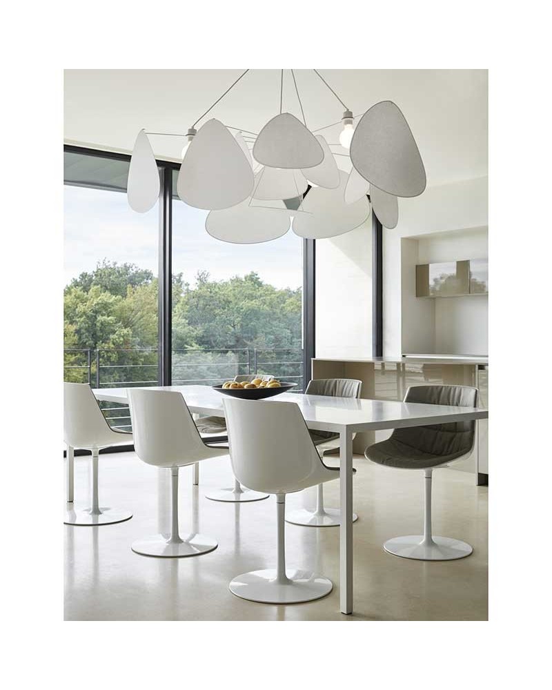 We present our elegant ceiling lamp with thirteen paper lampshades, uniting simplicity and style in a unique piece. With a white finish that radiates luminosity and freshness, this lamp adds a touch of sophistication to any space.