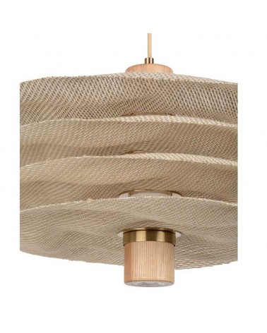 The superimposed lampshades, made with linen and plant resin with a natural finish, create a captivating visual effect. With opal glass and oak wood diffuser combined with brass details. Equipped with a textile cord. With two different R7S sockets, with a maximum power of 8W, and GU10, with a maximum power of 5W. Bulbs are not included, allowing you to customize the lighting to your preferences.