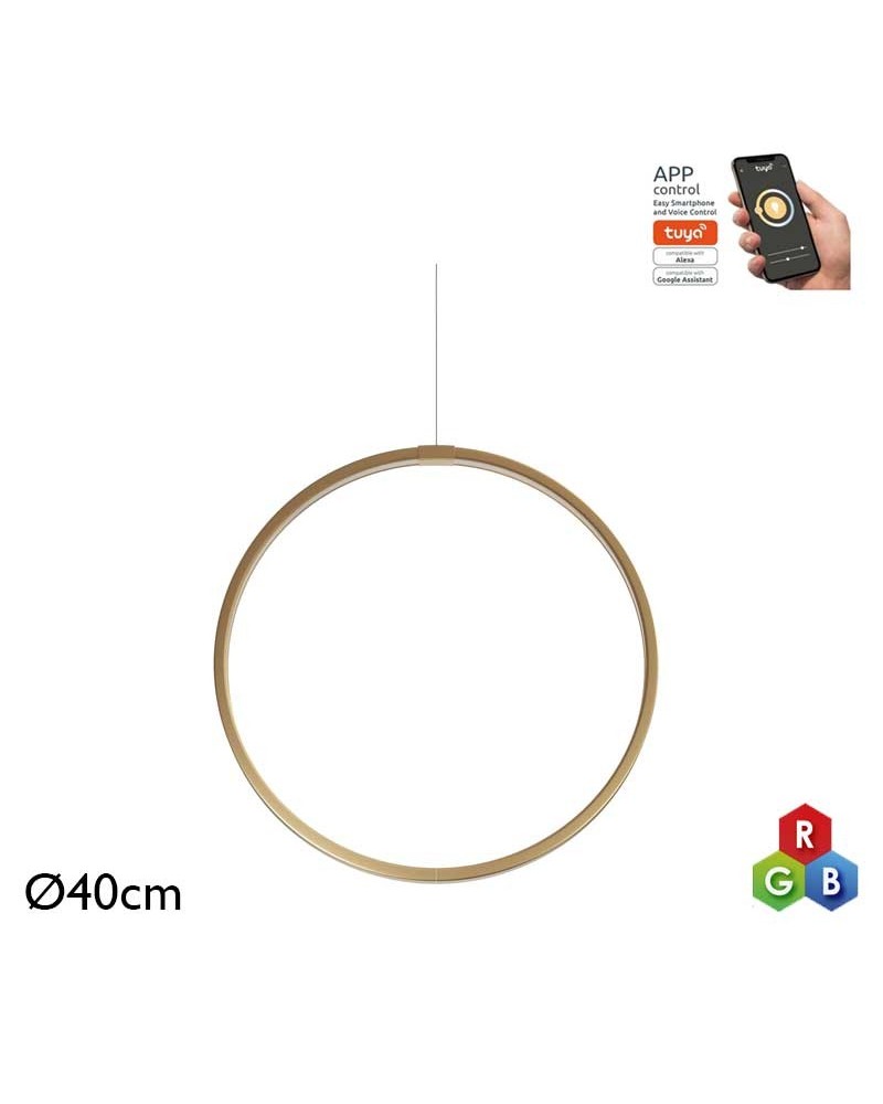 Made of aluminum available in gold or silver finishes, 40cm in diameter. It is perfect for illuminating contemporary and minimalist spaces. With the Tuya app, for smart control, you can adjust brightness, change colors and schedule schedules for your lamp, all from the convenience of your mobile device.