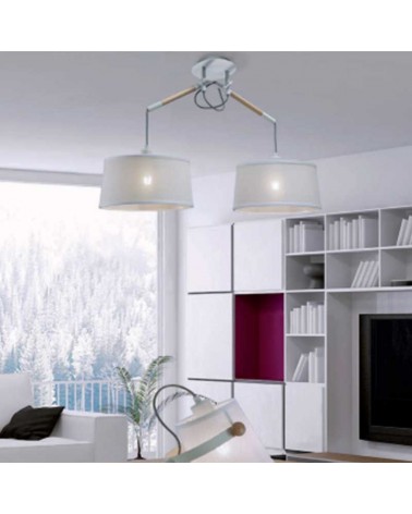 Suspension lamp 2x20W E27 with two 33cm fabric shades each. The screens are made of fabric and metal in black color and have a size of 33x17cms. The lamp supports up to 20W in two E27 bulbs.