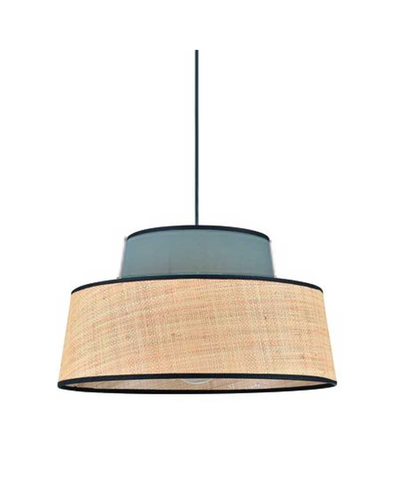 Ceiling lamp 38cm raffia and cotton shade in petrol color E27 100W